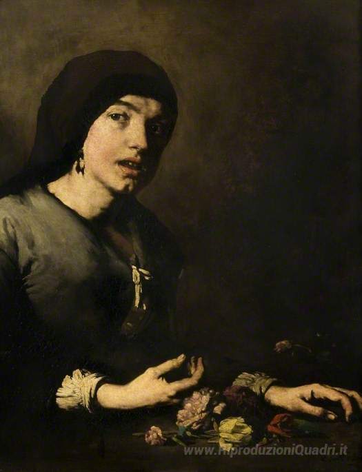 Ti offriamo una riproduzione artigianale su tela dell'opera famosa 'Il Flower Girl' di Theodule Ribot, dal Museo delle Riproduzioni.