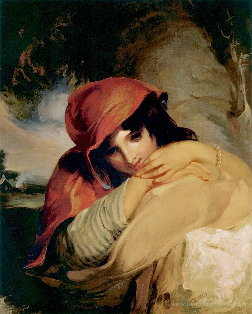 Ti offriamo una riproduzione artigianale su tela dell'opera famosa 'Il Gypsy Girl' di Thomas Sully, dal Museo delle Riproduzioni.