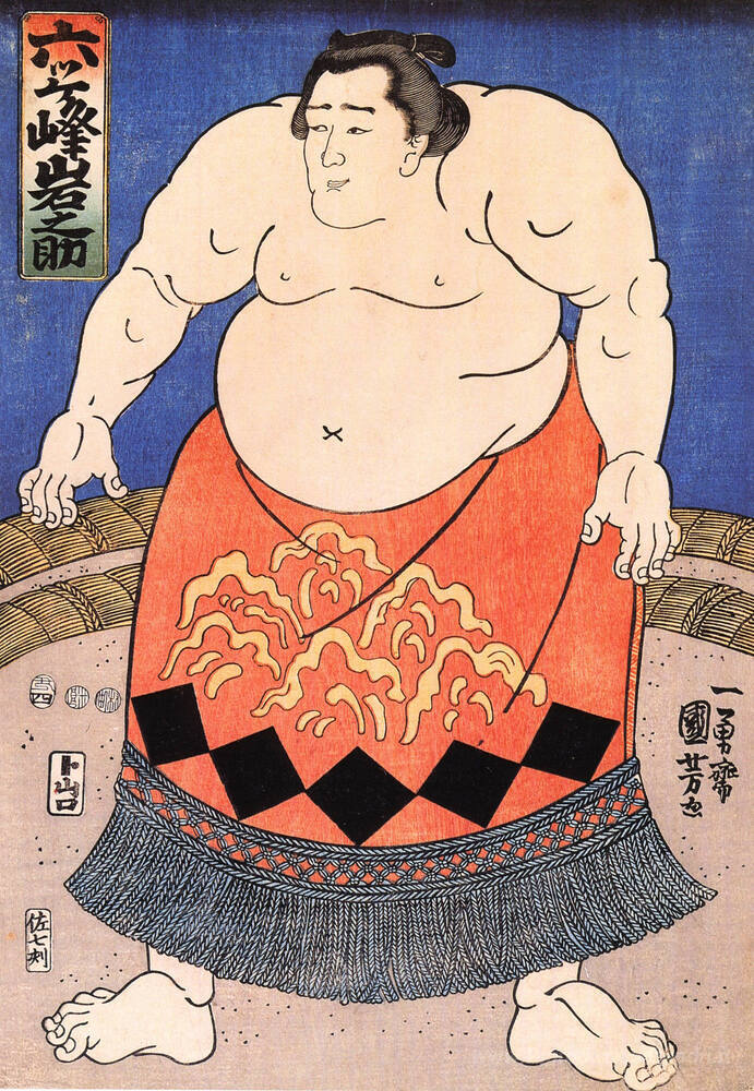 Ti offriamo una riproduzione artigianale su tela dell'opera famosa 'Il lottatore di sumo' di Utagawa Kuniyoshi, dal Museo delle Riproduzioni.