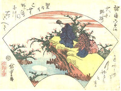 Ti offriamo una riproduzione artigianale su tela dell'opera famosa 'Il poeta Ariwara No Narihira' di Hiroshige, dal Museo delle Riproduzioni.