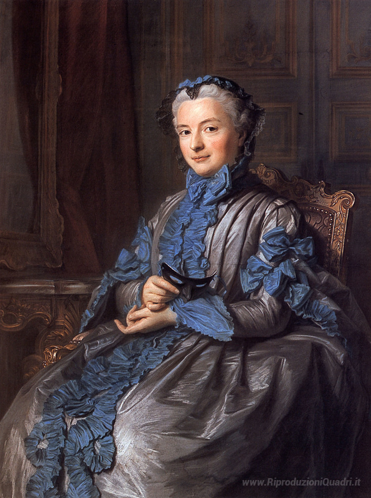 Ti offriamo una riproduzione artigianale su tela dell'opera famosa 'Il presidente di Rieux in vestito da promenade' di Maurice Quentin de La Tour, dal Museo delle Riproduzioni.