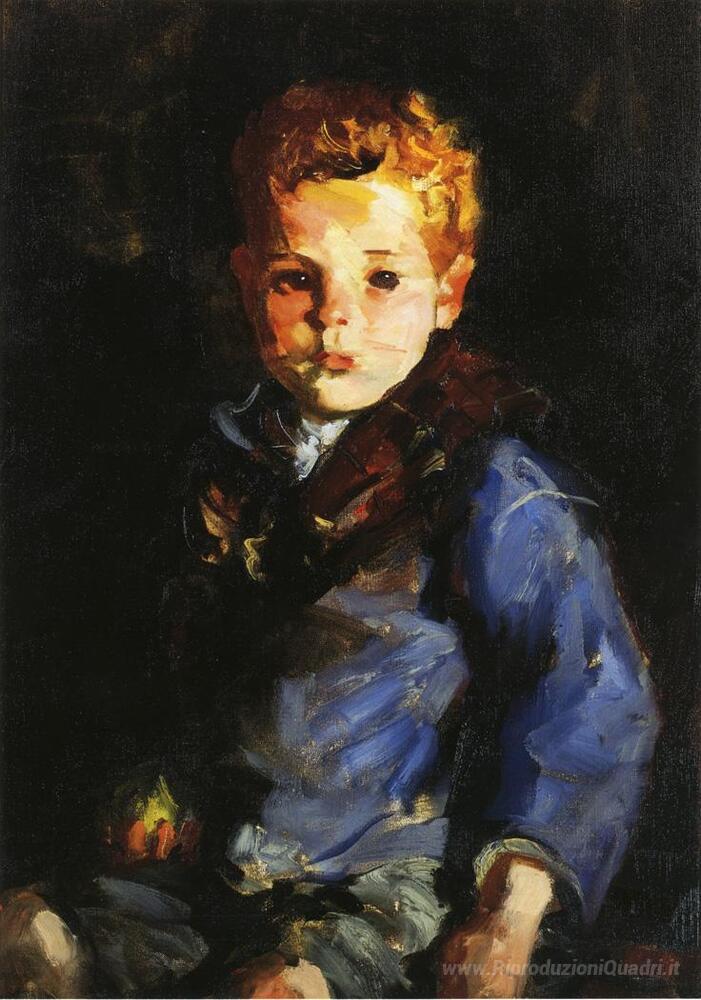 Ti offriamo una riproduzione artigianale su tela dell'opera famosa 'Il ragazzo irlandese in Blue Denim - Anthony Lavelle' di Robert Henri, dal Museo delle Riproduzioni.