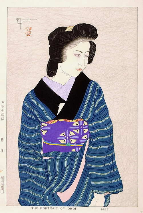 Ti offriamo una riproduzione artigianale su tela dell'opera famosa 'Il Ritratto di Okoi' di Paul Jacoulet, dal Museo delle Riproduzioni.