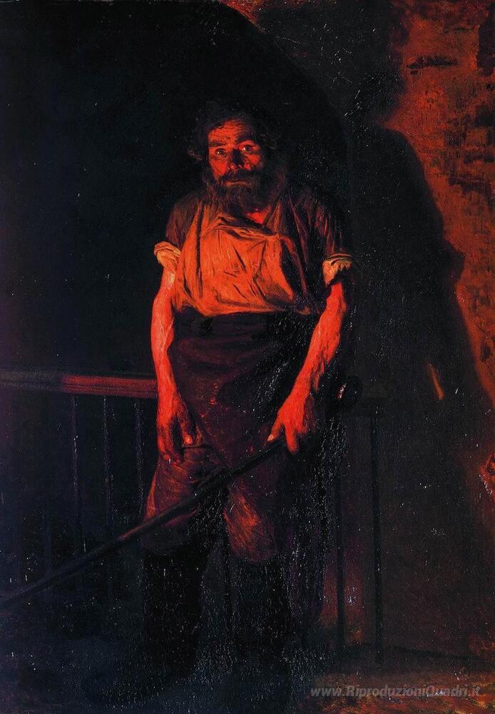 Ti offriamo una riproduzione artigianale su tela dell'opera famosa 'Il Stoker' di Mykola Yaroshenko, dal Museo delle Riproduzioni.