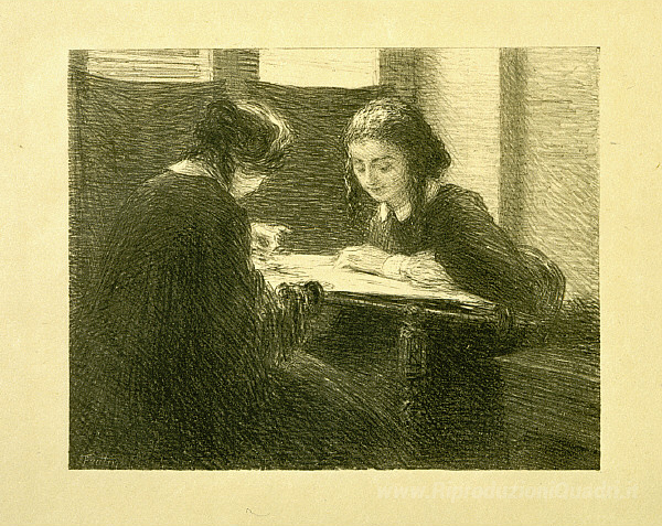 Ti offriamo una riproduzione artigianale su tela dell'opera famosa 'Il-Ricamatori, n ° 3' di Henri Fantin-Latour, dal Museo delle Riproduzioni.