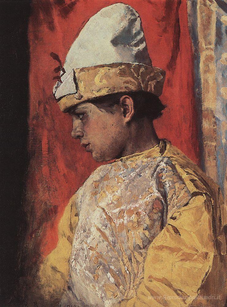 Ti offriamo una riproduzione artigianale su tela dell'opera famosa 'In un buffone vestito' di Viktor Vasnetsov, dal Museo delle Riproduzioni.