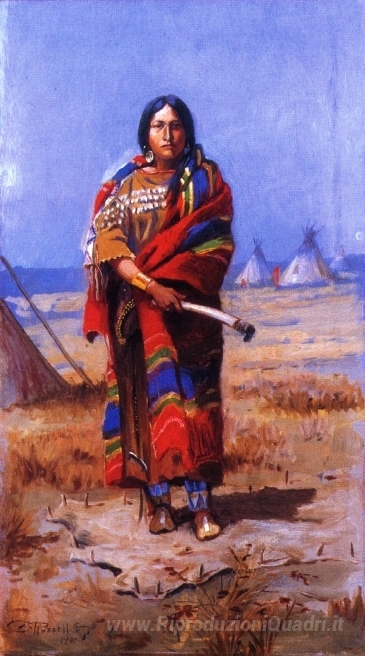 Ti offriamo una riproduzione artigianale su tela dell'opera famosa 'Indiano Squaw' di Charles M. Russell, dal Museo delle Riproduzioni.