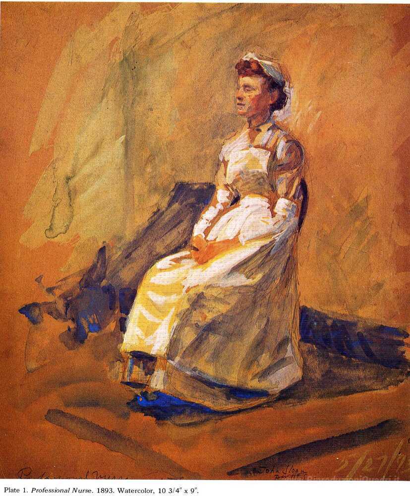 Ti offriamo una riproduzione artigianale su tela dell'opera famosa 'Infermiera professionale' di John French Sloan, dal Museo delle Riproduzioni.
