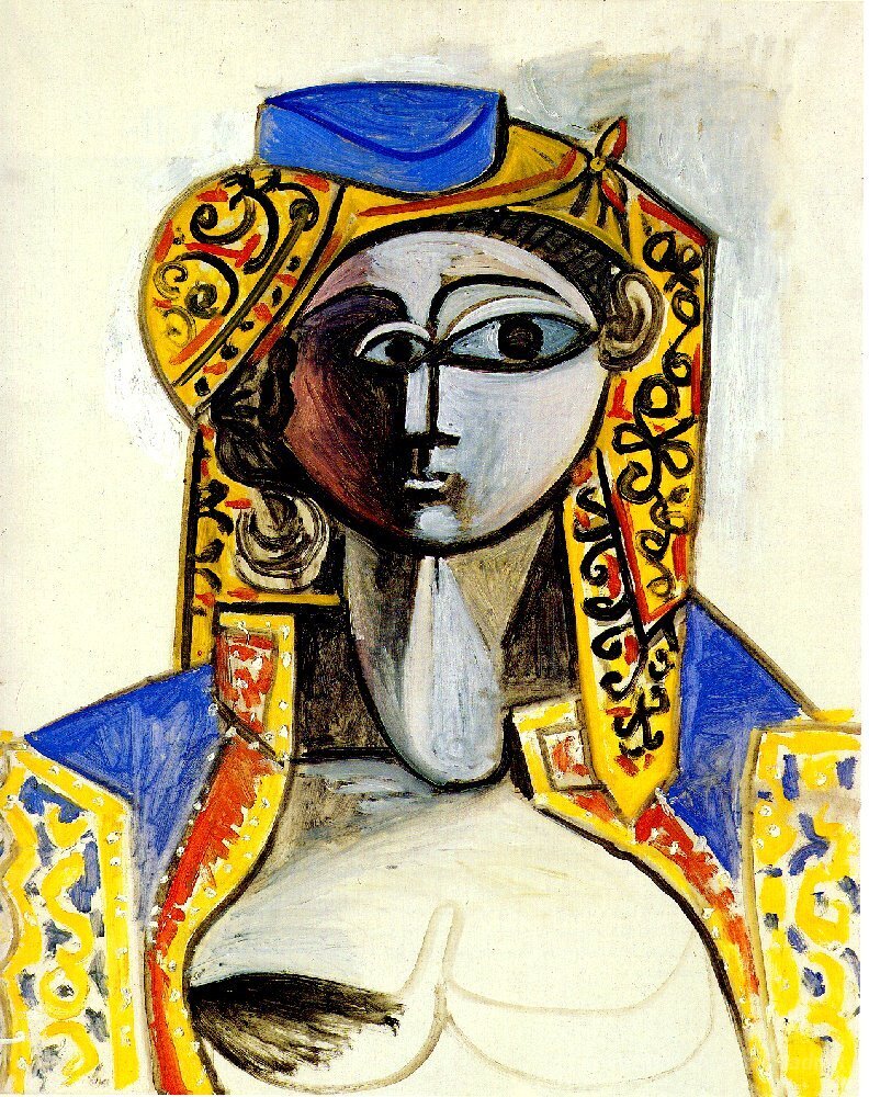 Ti offriamo una riproduzione artigianale su tela dell'opera famosa 'Jacqueline in costume turco' di Pablo Picasso, dal Museo delle Riproduzioni.