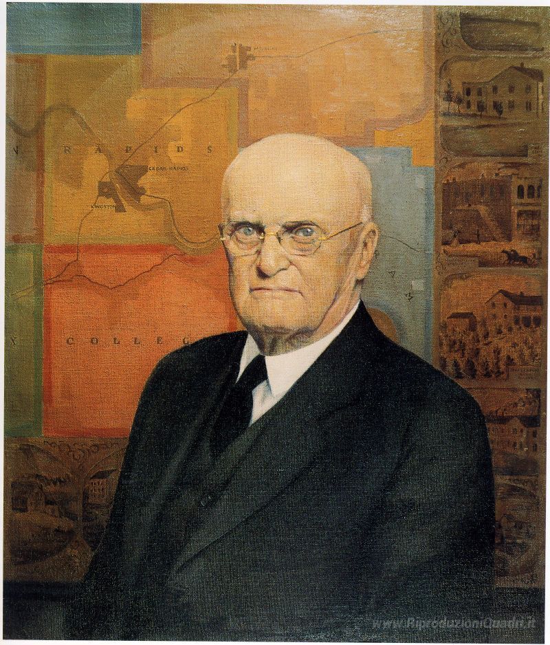 Ti offriamo una riproduzione artigianale su tela dell'opera famosa 'John B. Turner, Pioneer' di Grant Wood, dal Museo delle Riproduzioni.