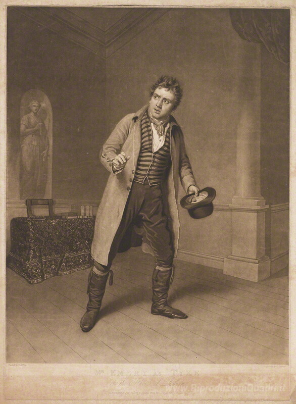 Ti offriamo una riproduzione artigianale su tela dell'opera famosa 'John Emery come Tyke in 'Scuola della riforma' di Morton' di Charles Turner, dal Museo delle Riproduzioni.