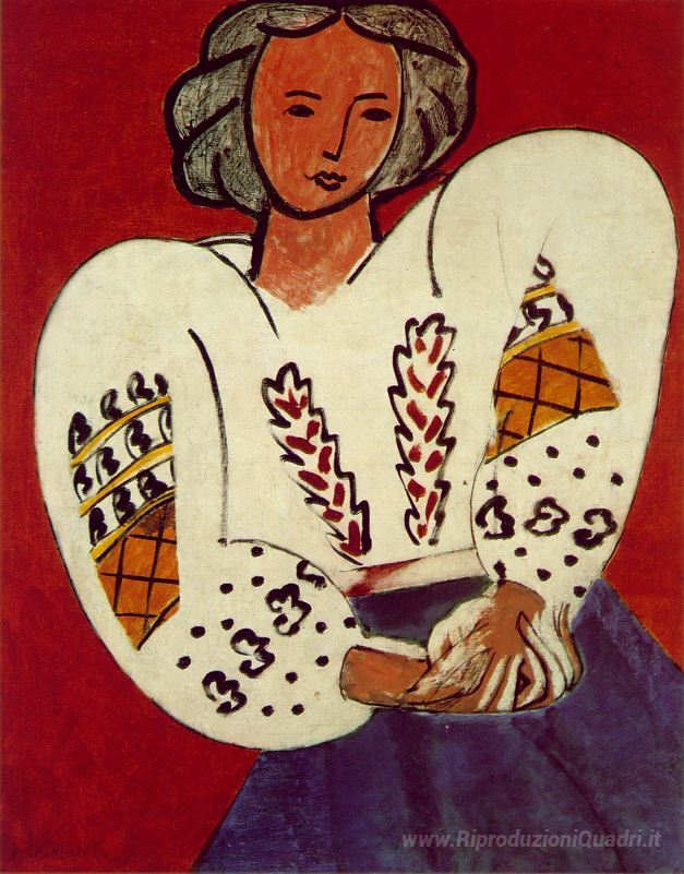 Ti offriamo una riproduzione artigianale su tela dell'opera famosa 'La Camicetta rumena' di Henri Matisse, dal Museo delle Riproduzioni.