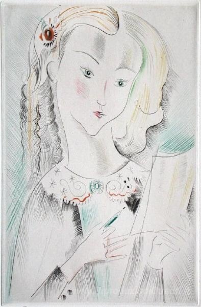 Ti offriamo una riproduzione artigianale su tela dell'opera famosa 'La Dessinatrice' di Mily Possoz, dal Museo delle Riproduzioni.