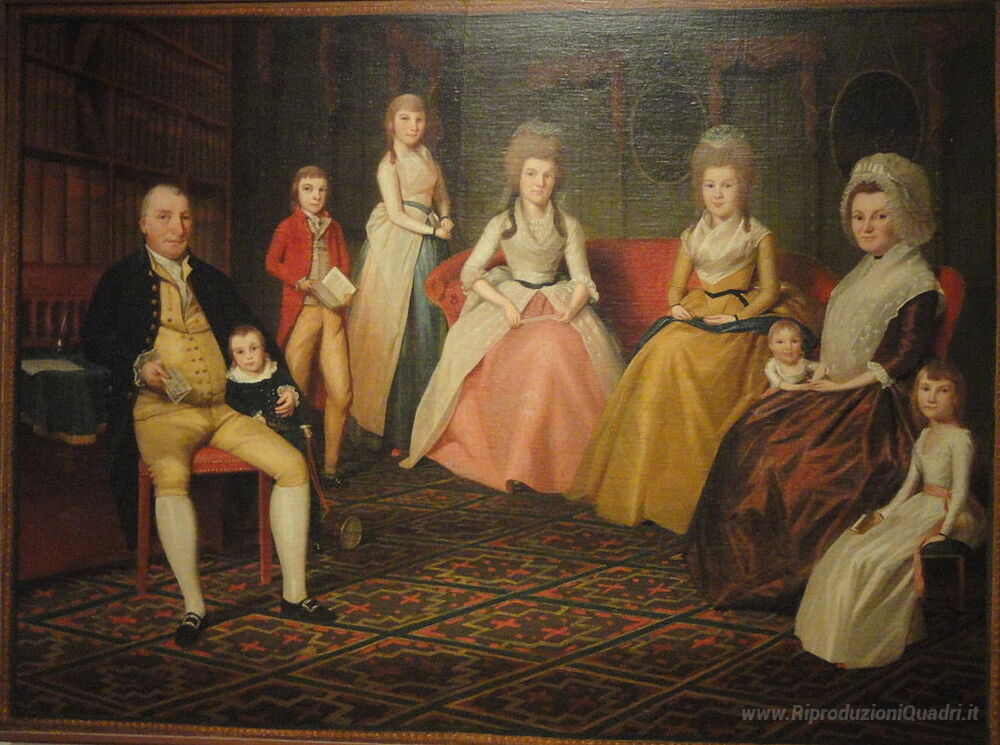 Ti offriamo una riproduzione artigianale su tela dell'opera famosa 'La famiglia Angus Nickelson' di Ralph Earl, dal Museo delle Riproduzioni.