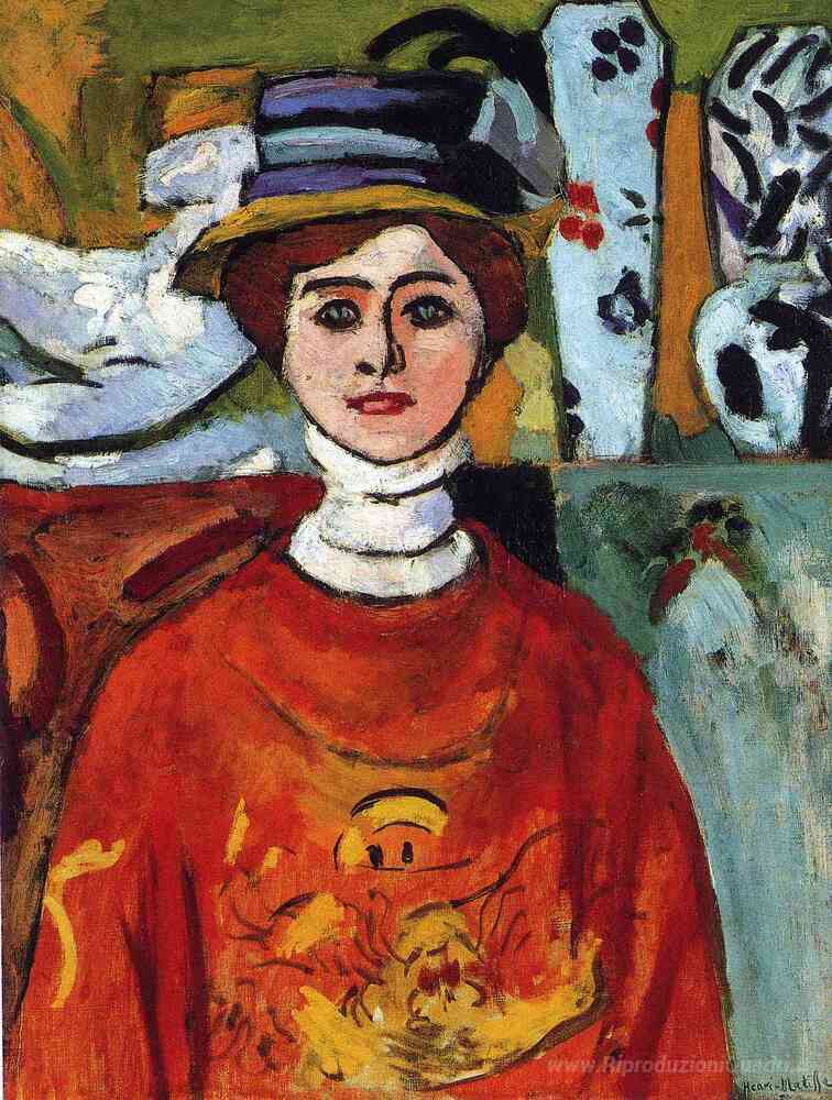 Ti offriamo una riproduzione artigianale su tela dell'opera famosa 'La ragazza con gli occhi verdi' di Henri Matisse, dal Museo delle Riproduzioni.