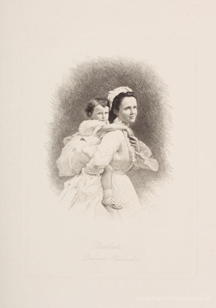 Ti offriamo una riproduzione artigianale su tela dell'opera famosa 'La regina Elisabetta e la principessa Marioara' di Constantin Stahi, dal Museo delle Riproduzioni.