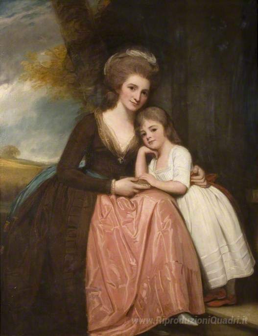 Ti offriamo una riproduzione artigianale su tela dell'opera famosa 'La signora Bracebridge e sua figlia Maria' di George Romney, dal Museo delle Riproduzioni.