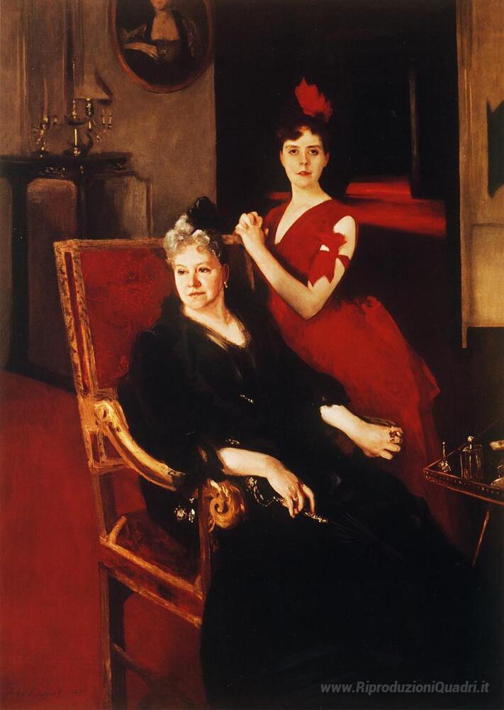 Ti offriamo una riproduzione artigianale su tela dell'opera famosa 'La signora Edward Burckhardt e sua figlia Louise' di John Singer Sargent, dal Museo delle Riproduzioni.