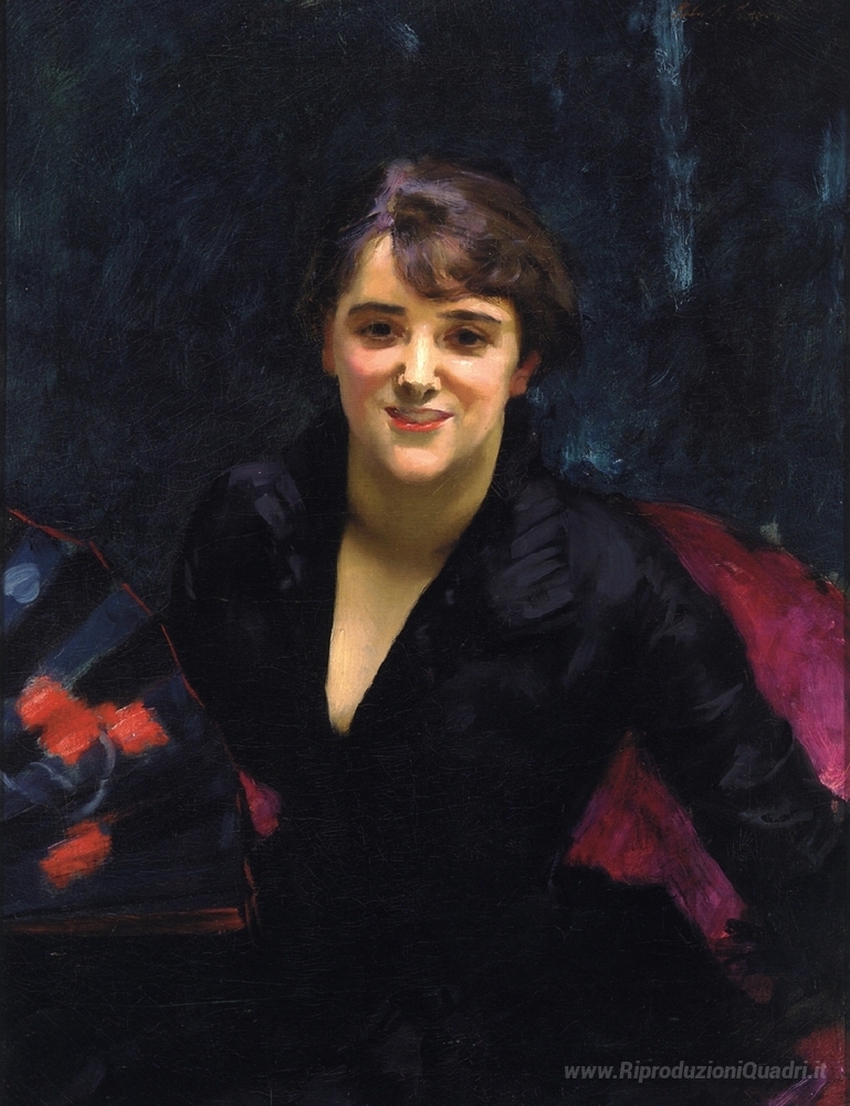 La signora Errazuriz, comunemente conosciuta come "The Lady in Black", è un'opera che incarna alla perfezione lo stile audace e sofisticato dell'artista. La sua presenza magnetica e il drappeggio elegante del suo abito scuro creano una sensazione di una nobiltà senza tempo, capace di arricchire ogni ambiente. Questo dipinto non è solo un elemento decorativo, ma una testimonianza di arte che trasforma lo spazio, rendendolo raffinato e accogliente.