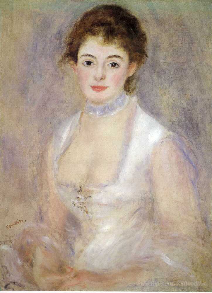 Ti offriamo una riproduzione artigianale su tela dell'opera famosa 'La signora Henriot' di Pierre-Auguste Renoir, dal Museo delle Riproduzioni.