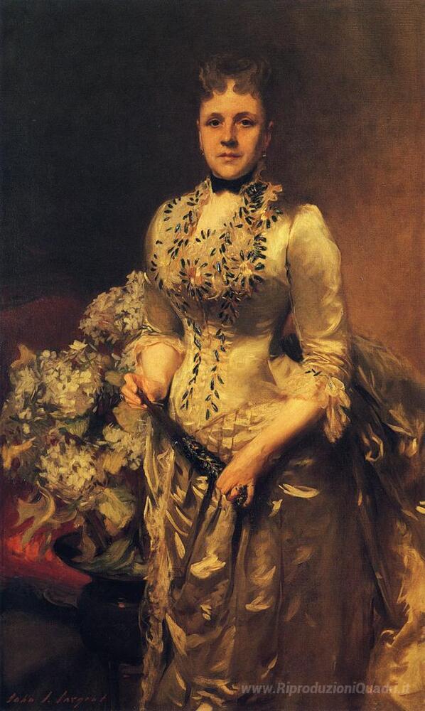 Ti offriamo una riproduzione artigianale su tela dell'opera famosa 'La signora Jacob Wandell' di John Singer Sargent, dal Museo delle Riproduzioni.