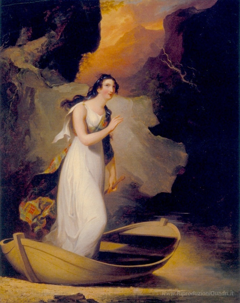 Ti offriamo una riproduzione artigianale su tela dell'opera famosa 'La signorina C. Parsons come 'The Lady of the Lake'' di Thomas Sully, dal Museo delle Riproduzioni.