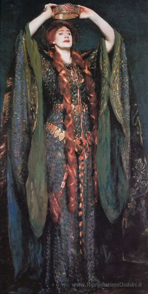 Scoprite l’eleganza intramontabile del dipinto La signorina Ellen Terry come Lady Macbeth, realizzato dal celebre artista John Singer Sargent. Questo straordinario olio su tela cattura la potenza e l'intensità emotiva della celebre attrice, immortalando un momento di pura teatralità e allusività. L’artista, noto per la sua maestria nel ritrarre la psicologia dei suoi soggetti, utilizza una tavolozza ricca e vibrante, mettendo in risalto il dramma e l'espressività dell'opera.