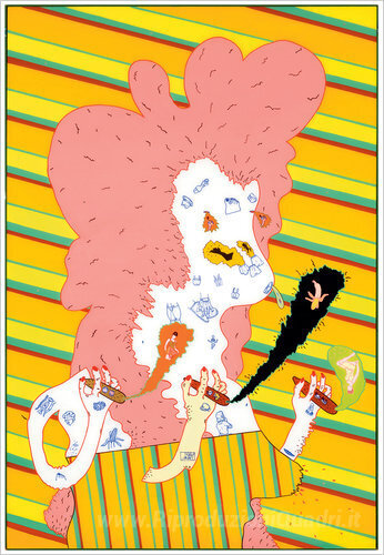 Ti offriamo una riproduzione artigianale su tela dell'opera famosa 'La signorina T. Garmint (pantaloni lei molto)' di Jim Nutt, dal Museo delle Riproduzioni.