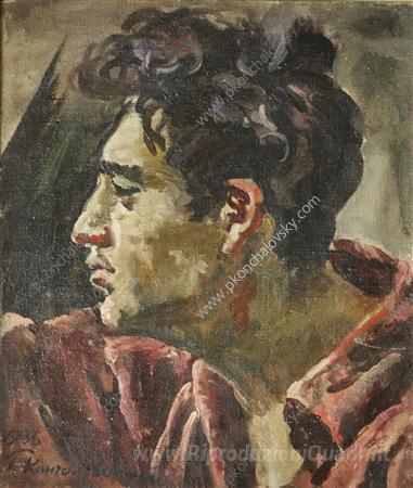 Ti offriamo una riproduzione artigianale su tela dell'opera famosa 'La testa del ragazzo di profilo' di Pyotr Konchalovsky, dal Museo delle Riproduzioni.