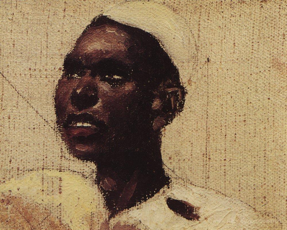 Ti offriamo una riproduzione artigianale su tela dell'opera famosa 'La testa dell'uomo nubian' di Vasily Polenov, dal Museo delle Riproduzioni.