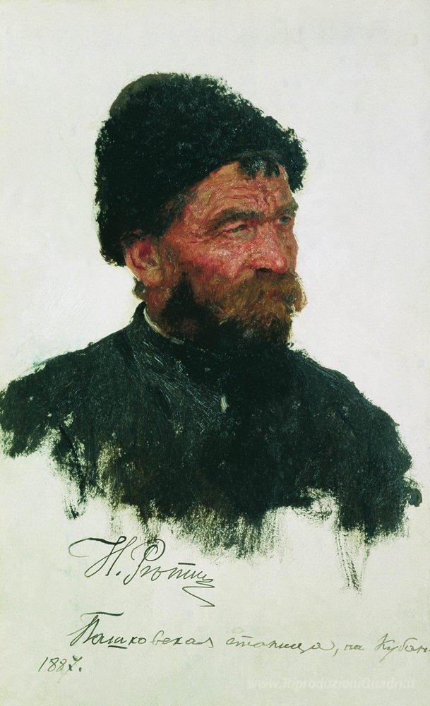 Ti offriamo una riproduzione artigianale su tela dell'opera famosa 'La testa di Cossack' di Ilya Repin, dal Museo delle Riproduzioni.