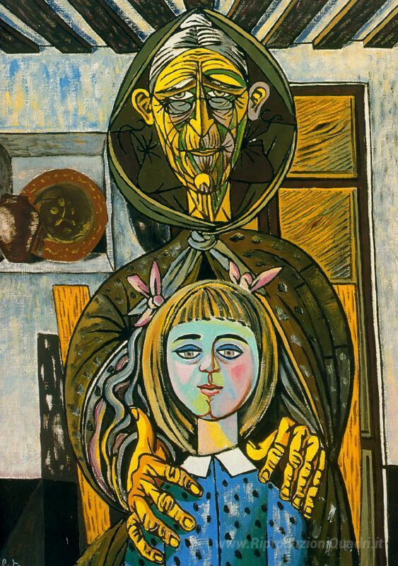 Ti offriamo una riproduzione artigianale su tela dell'opera famosa 'La vecchia e la bambina' di Rafael Zabaleta, dal Museo delle Riproduzioni.