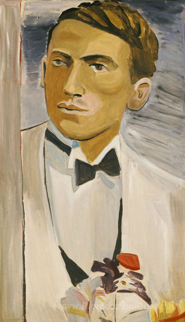 Ti offriamo una riproduzione artigianale su tela dell'opera famosa 'La versione di un ritratto con fiori di carta' di Yiannis Tsaroychis, dal Museo delle Riproduzioni.
