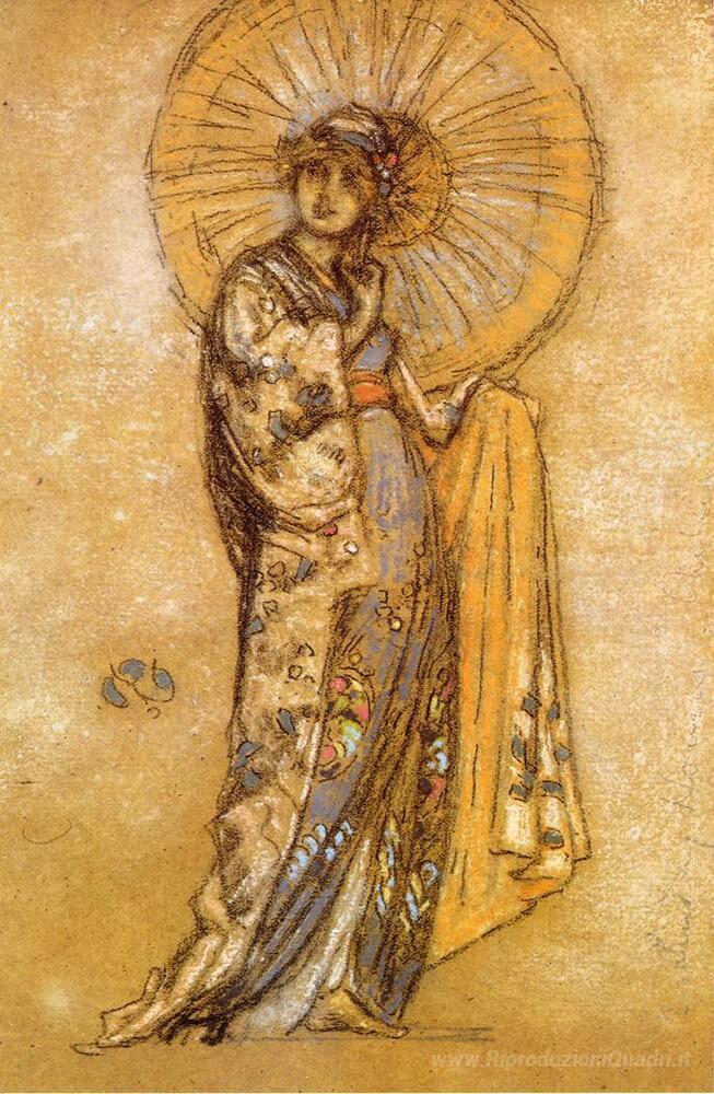 Ti offriamo una riproduzione artigianale su tela dell'opera famosa 'L'abito giapponese' di James McNeill Whistler, dal Museo delle Riproduzioni.