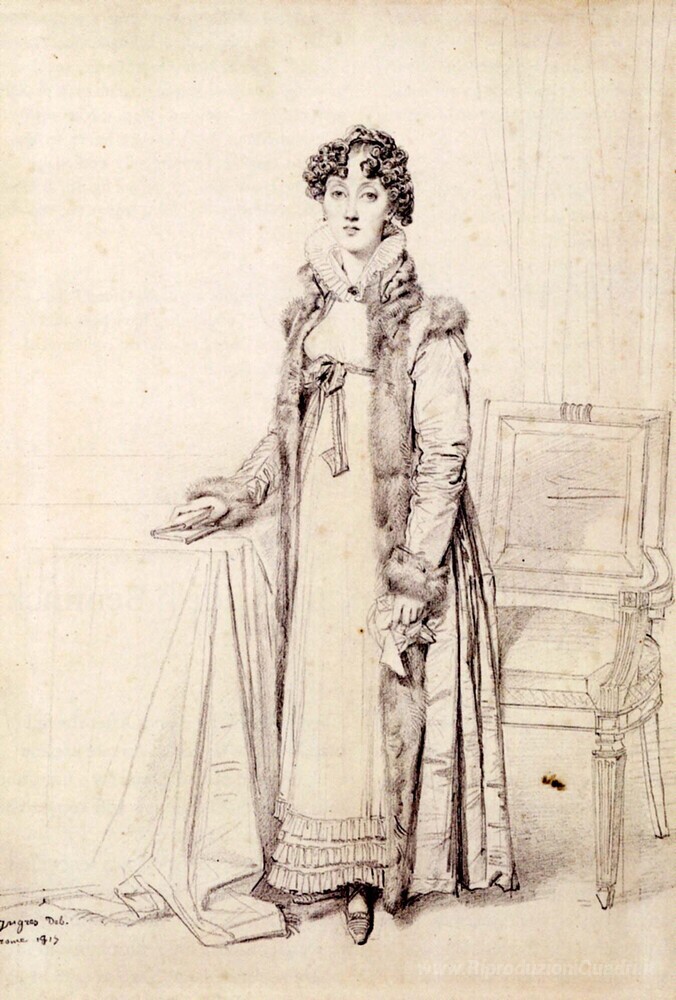Il quadro, caratterizzato da una tecnica impeccabile e da un uso straordinario delle luci e delle ombre, riesce a esaltare l'atmosfera di qualsiasi spazio. L'eleganza e la compostezza della figura ritratta trasmettono un senso di nobiltà e serenità, rendendo il dipinto un elemento ideale per arricchire l'ambiente domestico o professionale. Abbellito da dettagli squisiti, questo straordinario lavoro di Ingres trasforma qualsiasi angolo in un luogo di raffinata bellezza, perfetto per coloro che desiderano portare l'arte classica nel proprio quotidiano.