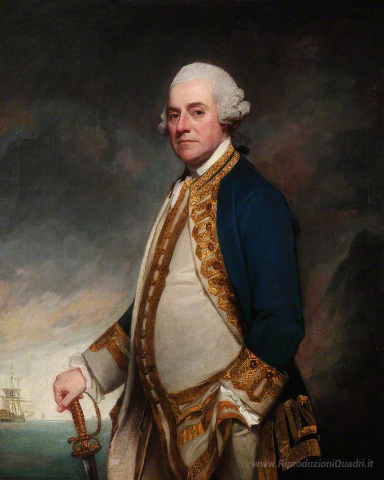 Ti offriamo una riproduzione artigianale su tela dell'opera famosa 'L'ammiraglio Sir Charles Hardy (c.1716-1780)' di George Romney, dal Museo delle Riproduzioni.