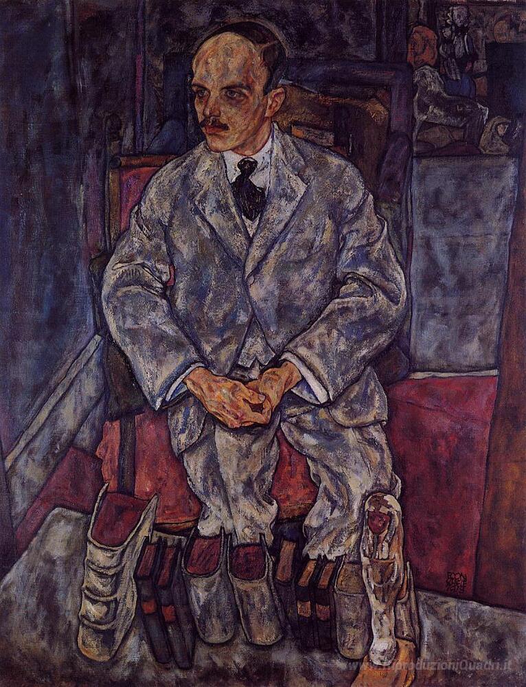 Ti offriamo una riproduzione artigianale su tela dell'opera famosa 'L'Art Dealer Guido Arnot' di Egon Schiele, dal Museo delle Riproduzioni.