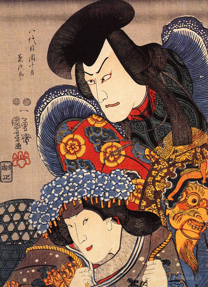 Ti offriamo una riproduzione artigianale su tela dell'opera famosa 'L'attore' di Utagawa Kuniyoshi, dal Museo delle Riproduzioni.