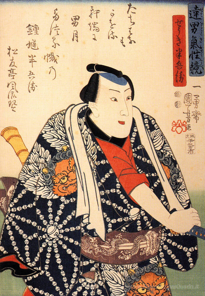 Ti offriamo una riproduzione artigianale su tela dell'opera famosa 'L'attore' di Utagawa Kuniyoshi, dal Museo delle Riproduzioni.