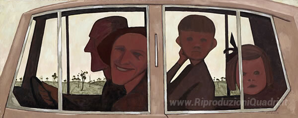 Ti offriamo una riproduzione artigianale su tela dell'opera famosa 'L'automobile' di John Brack, dal Museo delle Riproduzioni.