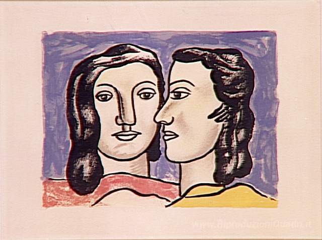 Ti offriamo una riproduzione artigianale su tela dell'opera famosa 'Le due facce' di Fernand Leger, dal Museo delle Riproduzioni.