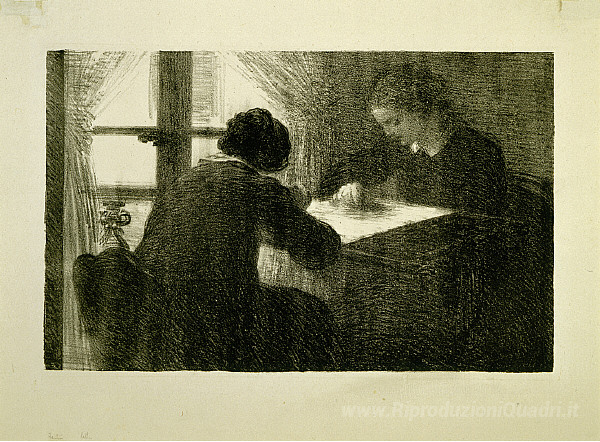 Ti offriamo una riproduzione artigianale su tela dell'opera famosa 'Le Embroiderers' di Henri Fantin-Latour, dal Museo delle Riproduzioni.