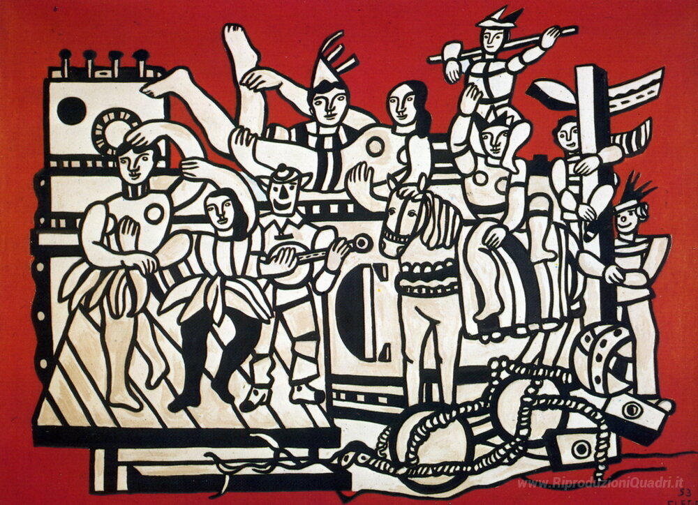 Ti offriamo una riproduzione artigianale su tela dell'opera famosa 'Le grandi parate su uno fondo rosso' di Fernand Leger, dal Museo delle Riproduzioni.