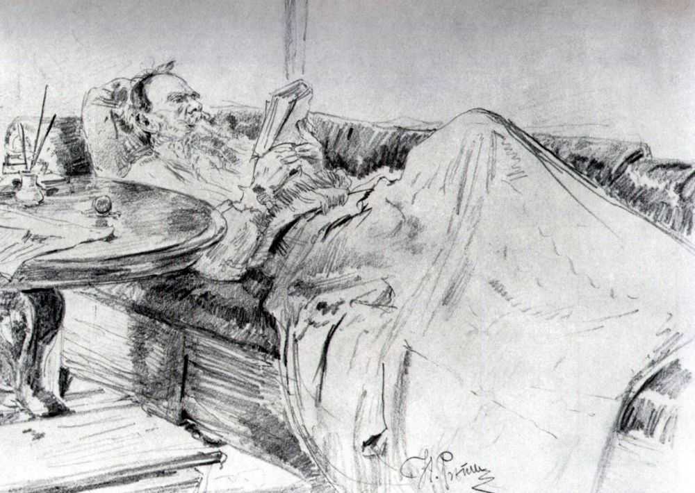 Ti offriamo una riproduzione artigianale su tela dell'opera famosa 'Leo Tolstoy lettura' di Ilya Repin, dal Museo delle Riproduzioni.