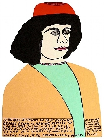 Ti offriamo una riproduzione artigianale su tela dell'opera famosa 'Leonardo da Vinci' di Howard Finster, dal Museo delle Riproduzioni.