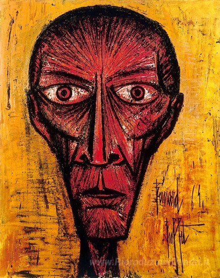 Ti offriamo una riproduzione artigianale su tela dell'opera famosa 'Les ?corches: Tête d'écorché' di Bernard Buffet, dal Museo delle Riproduzioni.
