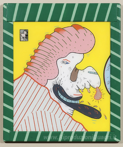 Ti offriamo una riproduzione artigianale su tela dell'opera famosa 'Lippy' di Jim Nutt, dal Museo delle Riproduzioni.