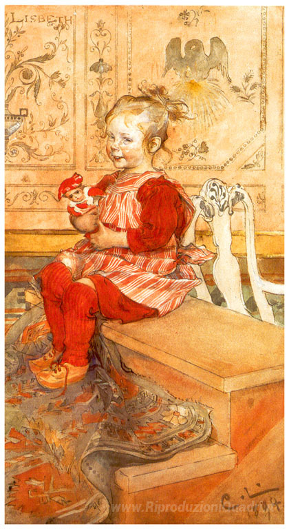 Ti offriamo una riproduzione artigianale su tela dell'opera famosa 'Lisbeth' di Carl Larsson, dal Museo delle Riproduzioni.