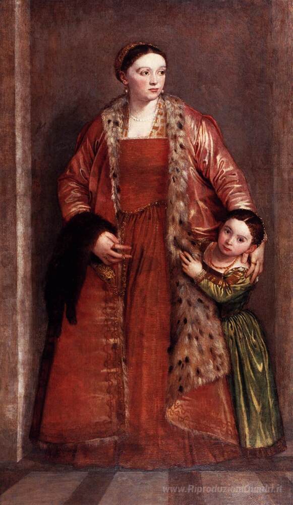 Ti offriamo una riproduzione artigianale su tela dell'opera famosa 'Livia da Porto Thiene e sua figlia Porzia' di Paolo Veronese, dal Museo delle Riproduzioni.