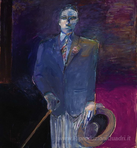 Ti offriamo una riproduzione artigianale su tela dell'opera famosa 'L'uomo con un cappello, canna e guanto' di Nathan Oliveira, dal Museo delle Riproduzioni.